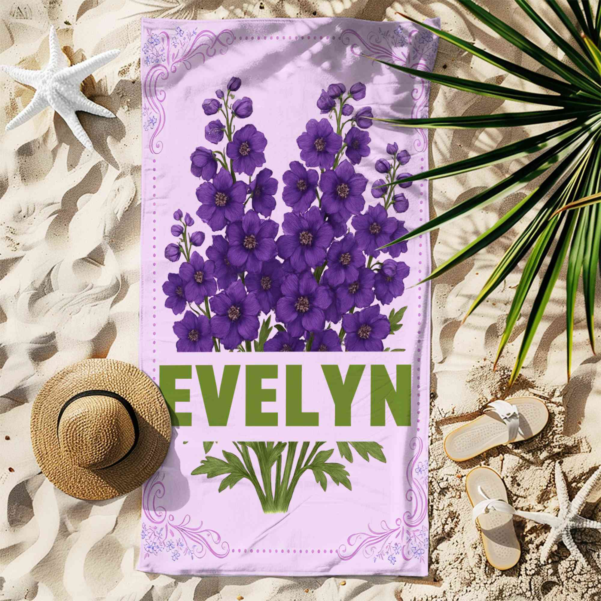 • Personalized Name Birth Flower Beach Towel, Quick Dry Microfiber Bath Towel, Vacation/Beach/Pool Party Favor, Gift for Her/Mom/Friends/Bridesmaids