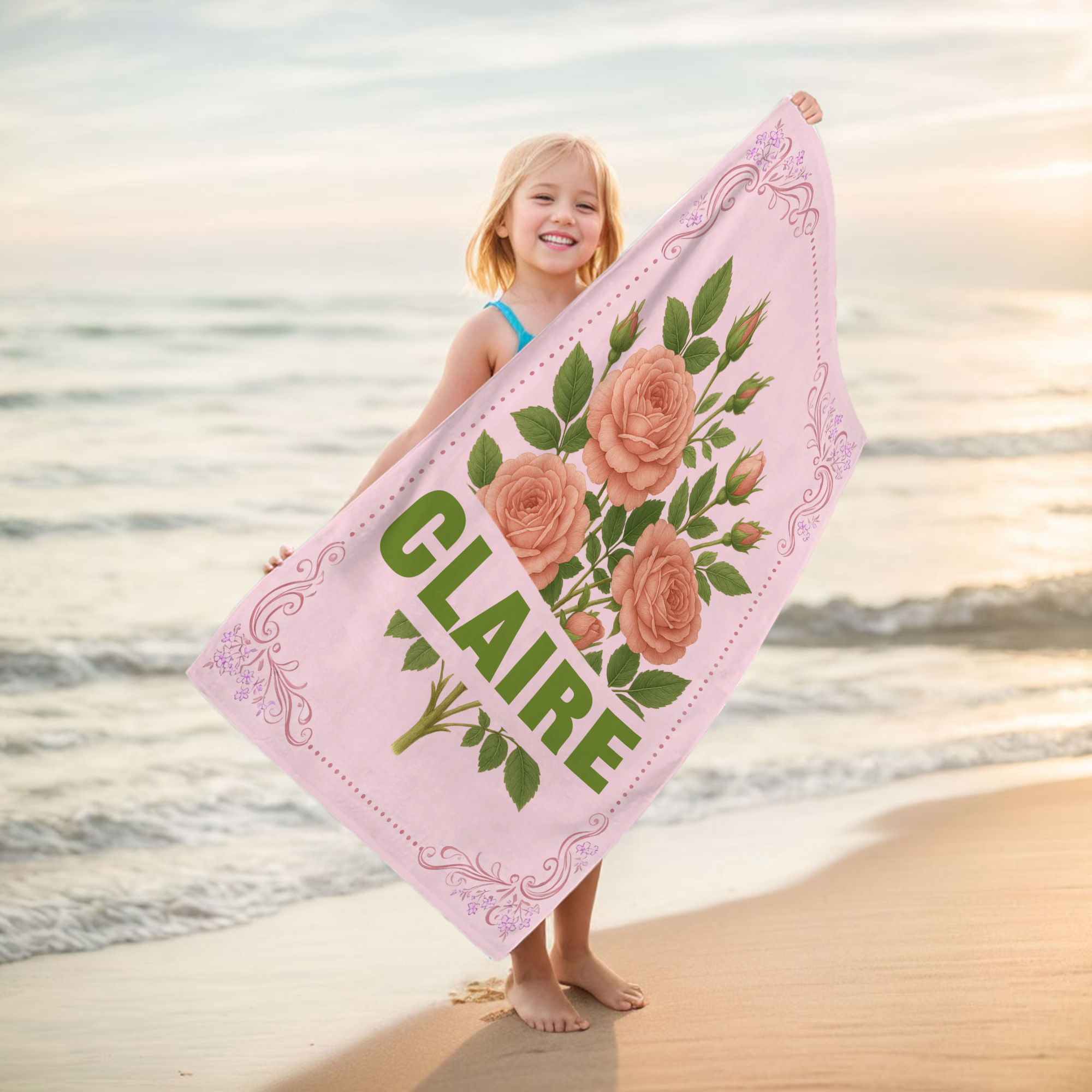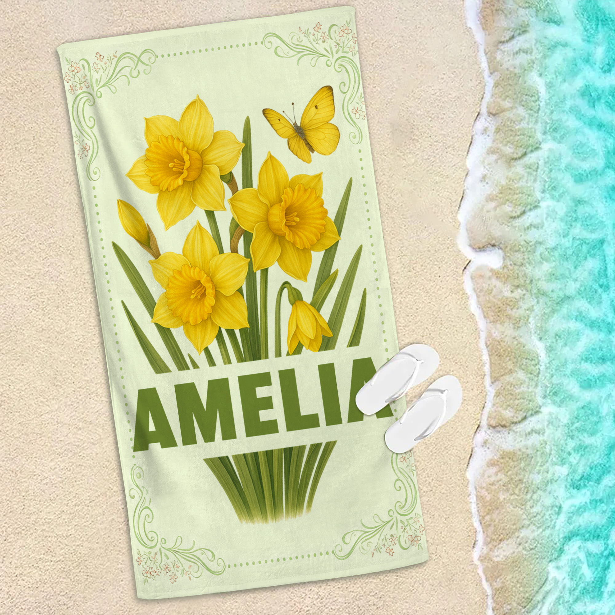 Meaningful Floral Design - This beach towel highlights a beautiful birth flower illustration paired with your chosen name, giving it a soft and personal touch. The artwork feels bright, stylish, and perfect for sunny days by the water.
