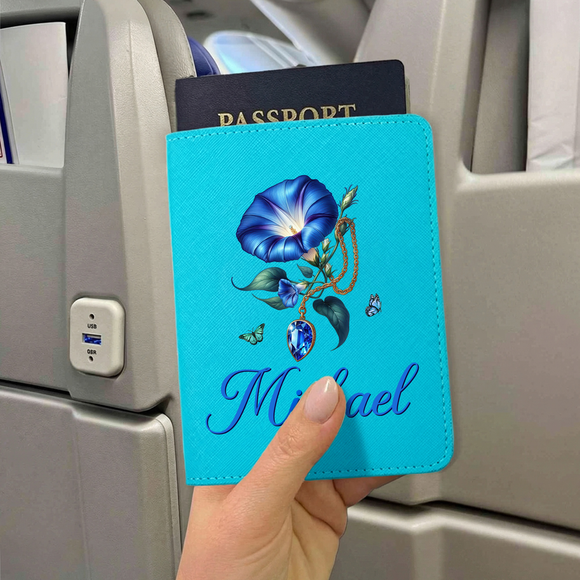 Gemstone Birth Flower Design - The passport holder set features a graceful birth flower paired with a matching birthstone, creating a meaningful design that reflects personal stories, birth months, and individuality. The clean layout and colorful details give the set an elegant yet modern travel style.